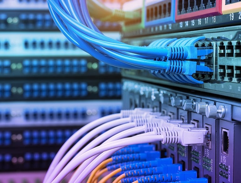 Realizamos a instalação e organização completa de cabeamento de dados e racks, desde pequenas empresas até grandes data centers.